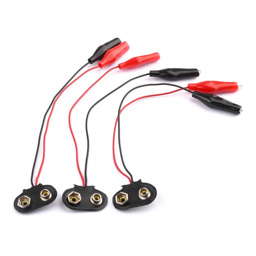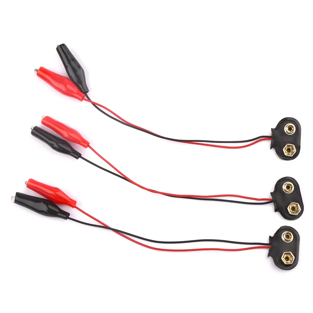 3pcs 9V Battery Power Connector Snap Clip Adapter 18cm 2 Wired Cable Connection Buckle Battery Holder Socket Plug with Alligator