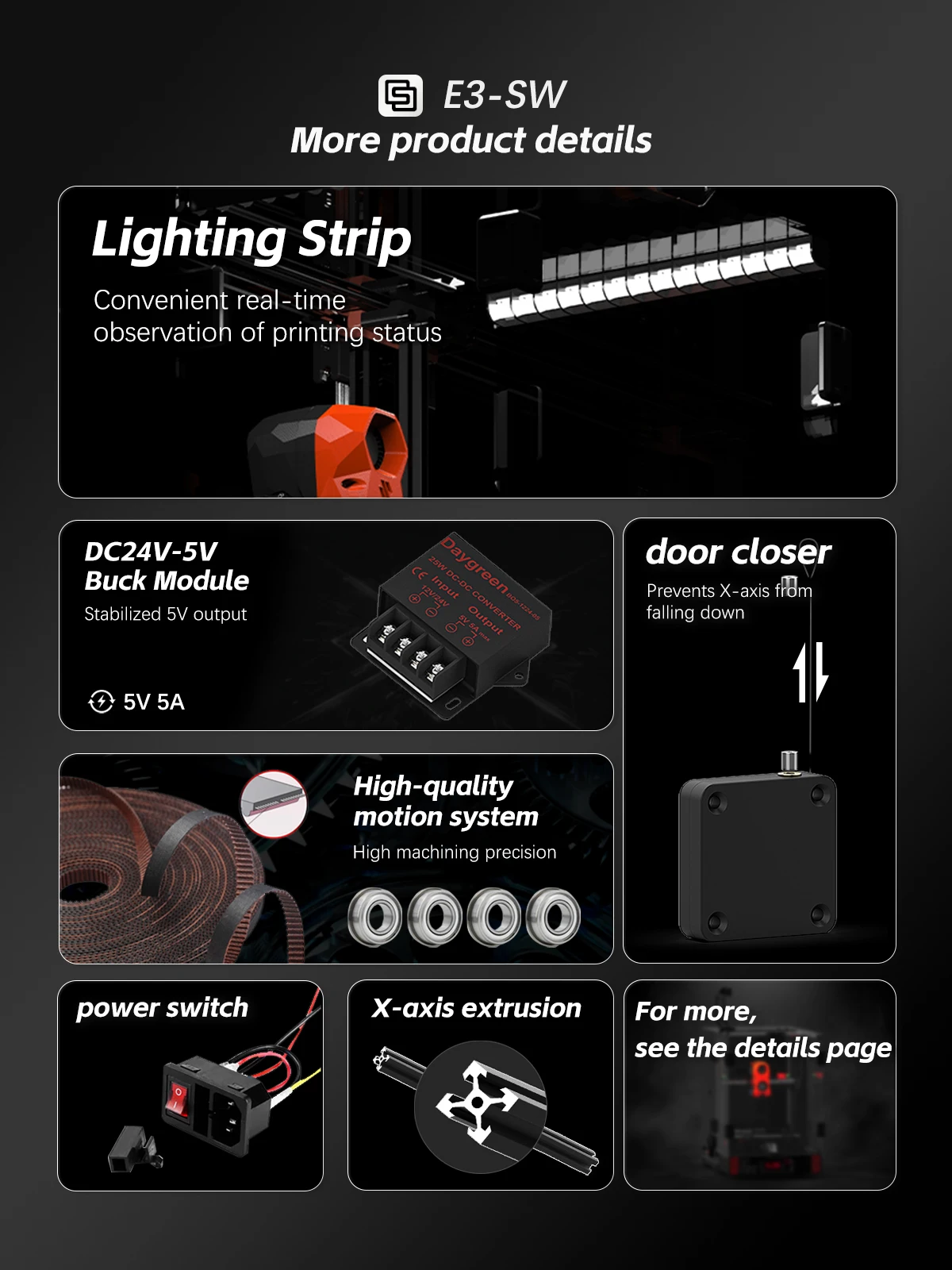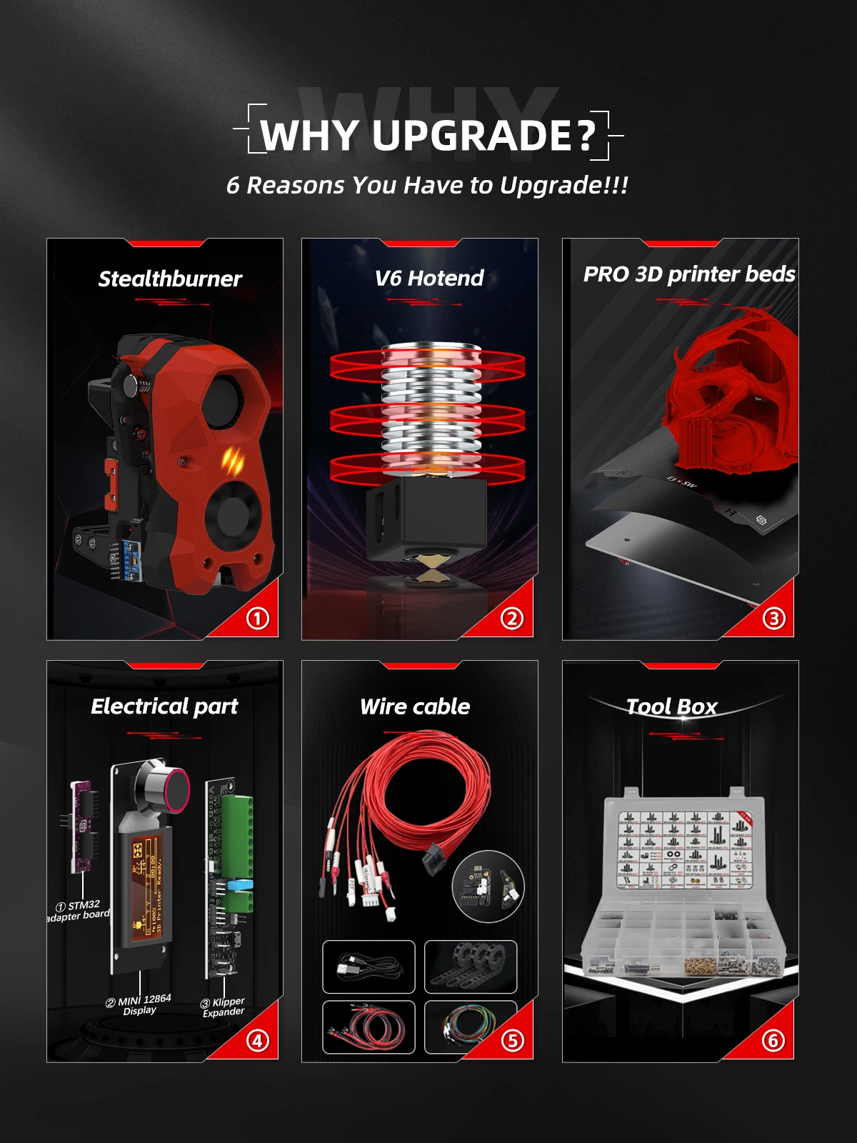 Il permet d’augmenter la vitesse d’impression de 80 mm/s à 200 mm/s et de prendre en charge l’impression de filaments ABS, PA, etc.