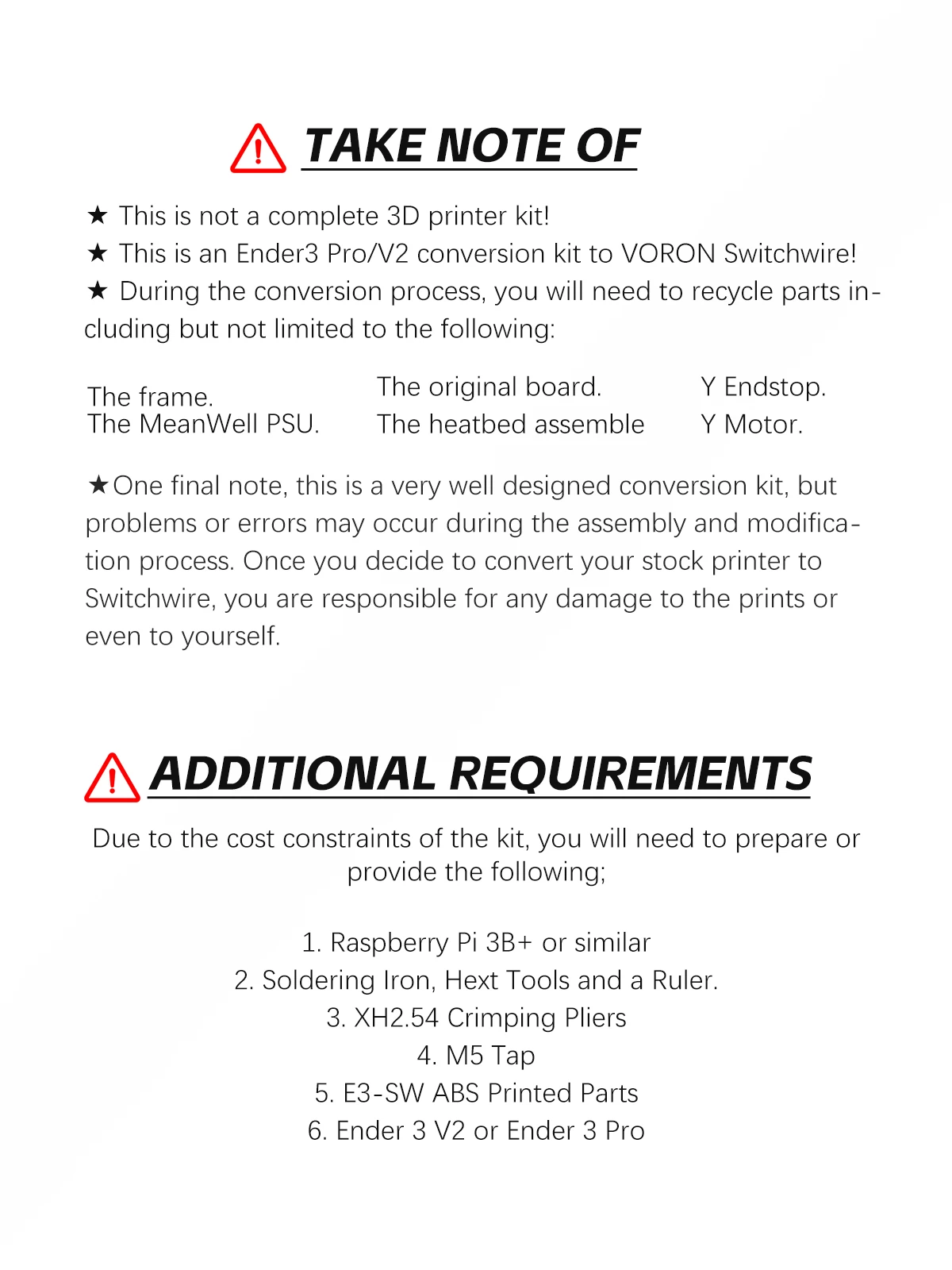 Le kit de conversion Voron E3-Switchwire permet d’améliorer les imprimantes 3D Ender3 V2 et Ender3 Pro.