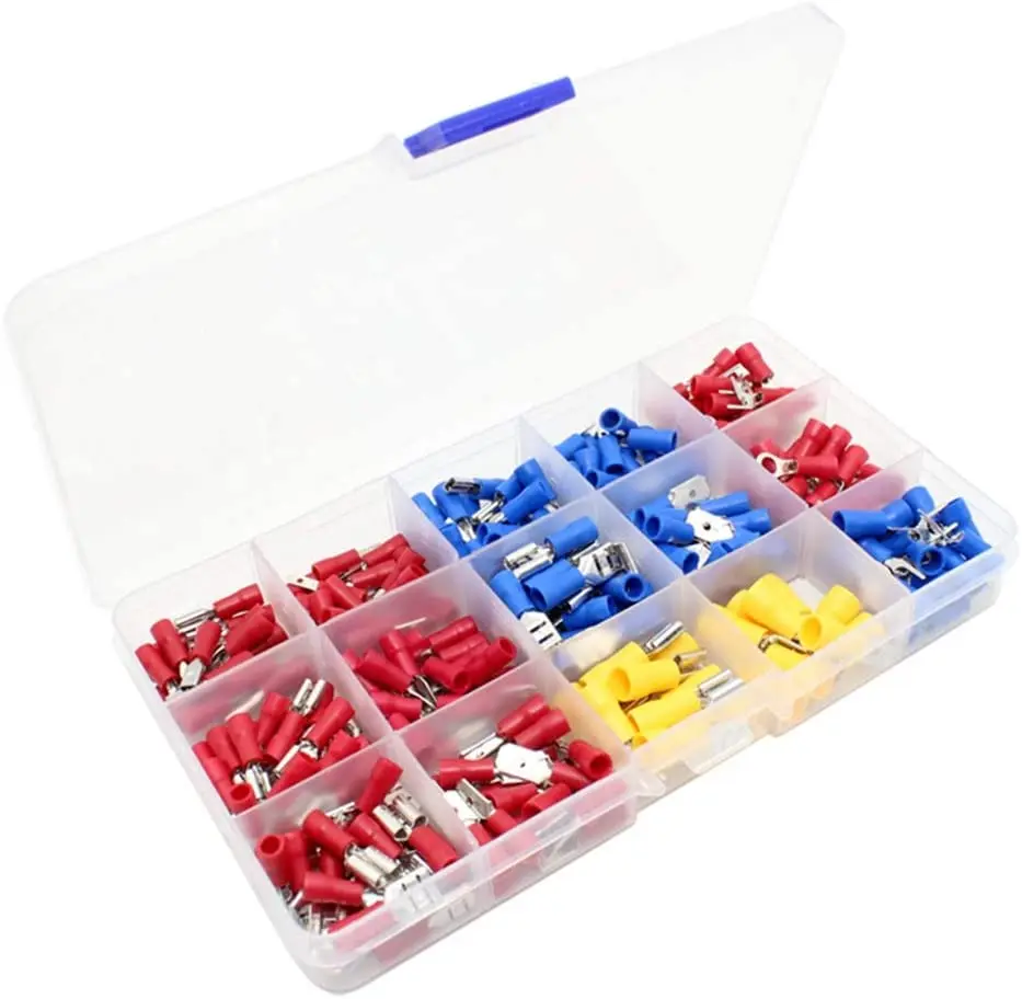 La combinaison de trois couleurs permet de distinguer plus facilement les différentes tailles. Livré avec des manchons isolants sûrs à utiliser et une boîte en plastique pour ranger les bornes.