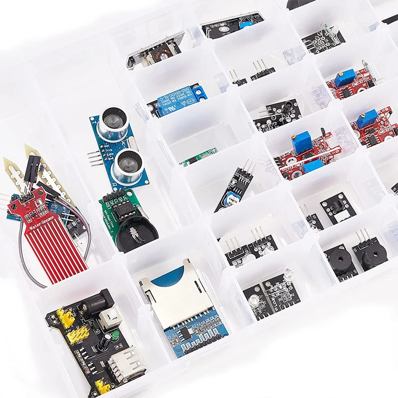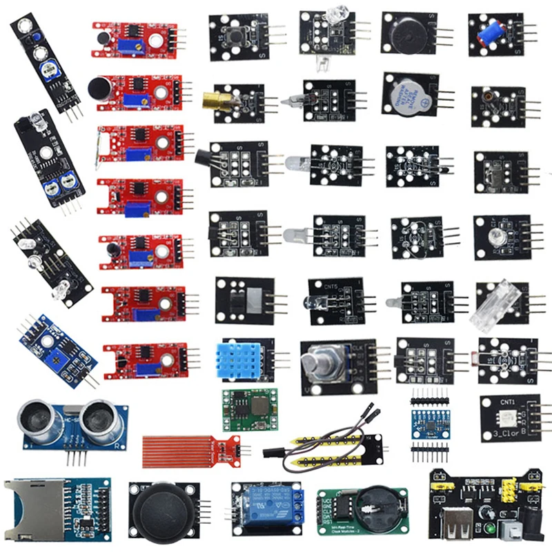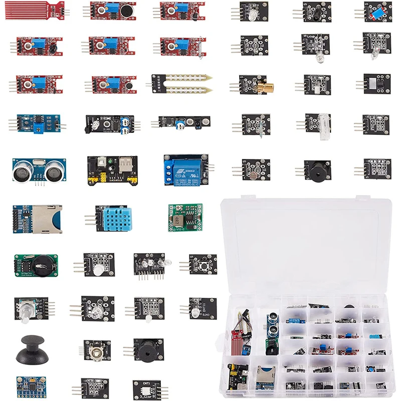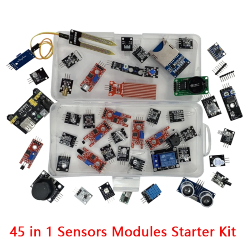Le kit comprend 45 capteurs différents, tels que des capteurs de température, d’humidité, de mouvement, de lumière, etc.