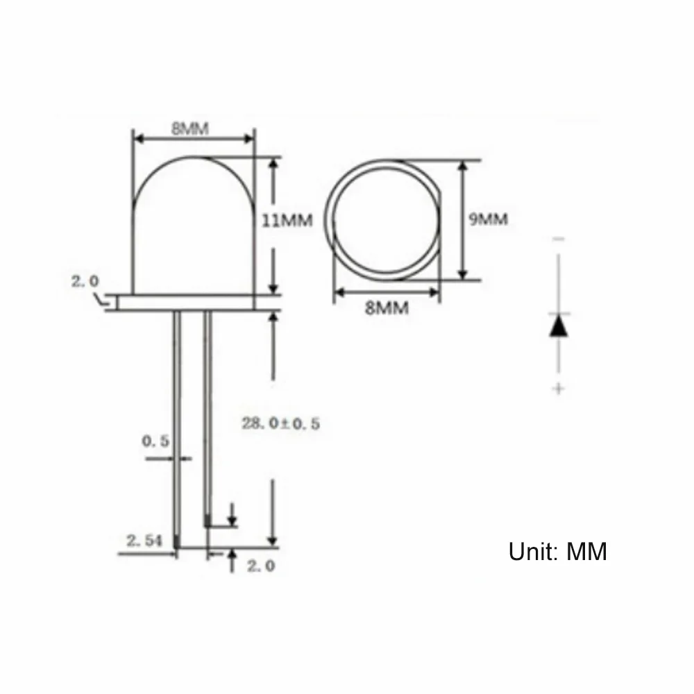 Les diodes ont un diamètre de tête de 8 mm, ce qui les rend faciles à manipuler et à intégrer dans des circuits PCB DIY. Leur basse tension et leur courant de fonctionnement de 2-3.2V | 20mA les rendent adaptées à une utilisation dans de nombreux appareils électroniques.
