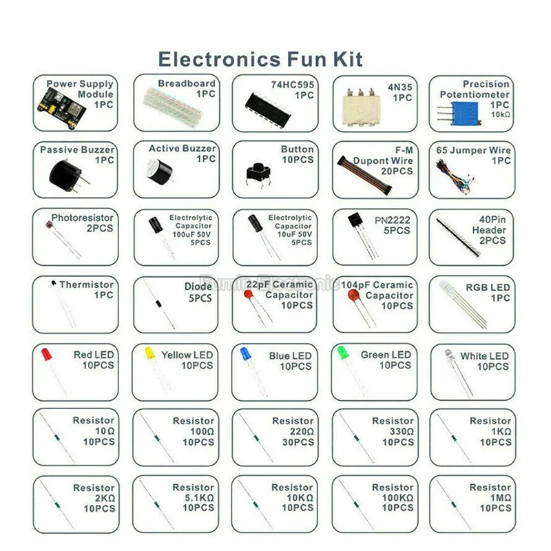 - Contient une variété de composants électroniques