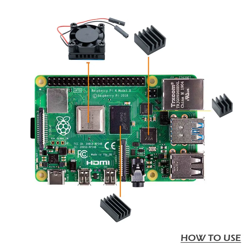 Le kit Raspberry Pi 4 modèle B dissipateur de chaleur ventilateur de refroidissement unique RAM dissipateur de chaleur est conçu pour le Raspberry Pi 4B. Il est livré avec un ventilateur de refroidissement simple qui est inclus avec l’adhésif conducteur thermique pour une meilleure dissipation de chaleur.