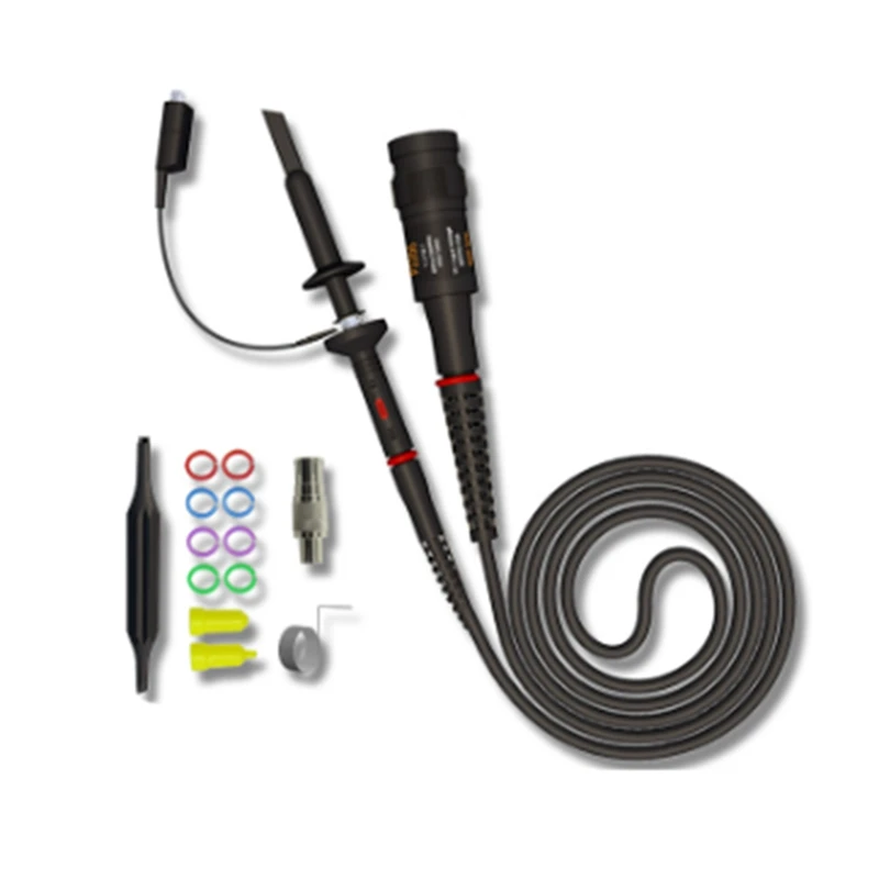 Les sondes d’oscilloscope avec l’extrémité standard de BNC sont les composants électriques qui relient le circuit sous l’essai et l’entrée d’oscilloscope. Des matériaux supérieurs et une technologie avancée améliorent le sentiment et la structure. La surface lisse est facile à utiliser. Cette sonde est une sonde d’oscilloscope 200MHz avec un commutateur pour l’atténuation 1x / 10x, peut répondre à vos différents besoins. Équipé d’une pointe de sonde interchangeable, qui est haute sensibilité, excellente performance et fonction fiable. Anneaux d’identification 4 couleurs compatibles avec la plupart des tailles de sondes d’oscilloscope pour une différenciation facile des canaux. Le câble BNC à double crochet est facile à surveiller les changements dans le signal. S’applique à toutes les interfaces BNC (telles que les oscilloscopes, les générateurs de signaux, la vidéosurveillance, etc.), parfait pour les travaux de test électrique ou de laboratoire.