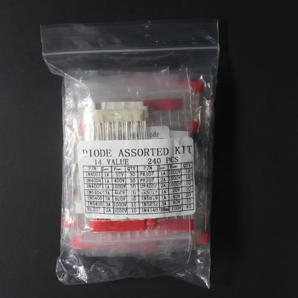 Le kit de diode redresseur Schottky à commutation rapide est un produit de haute qualité. Il comprend 14 types de diodes redresseurs différents, pour un total de 240 pièces.