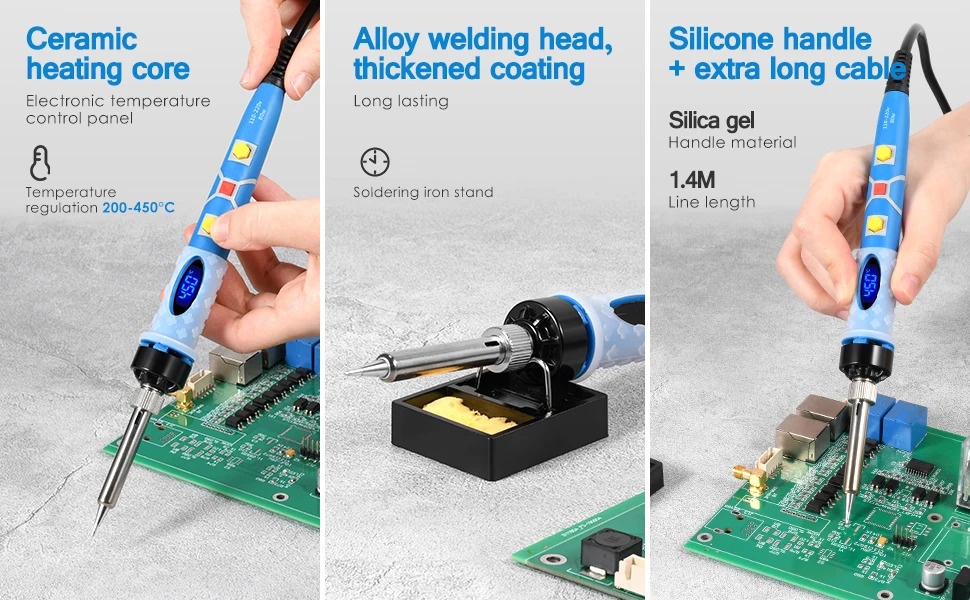 - Chauffage rapide: le fer à souder 80W chauffe à la température sélectionnée en 30 secondes.