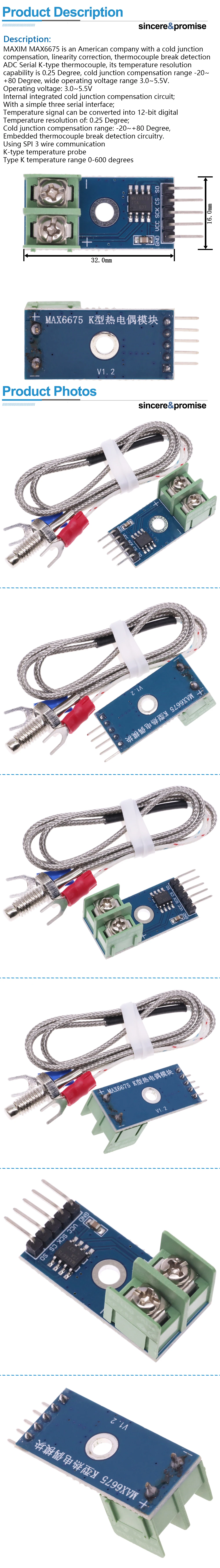 MAXIM MAX6675 est une société américaine avec une compensation de jonction froide, une correction de linéarité, une détection de rupture de thermocouple ADC Serial K-type thermocouple. Sa capacité de résolution de température est de 0.25 degrés, et sa plage de compensation de jonction froide est de -20 ~ +80 degrés. Le capteur fonctionne avec une tension de 3.0 ~ 5.5V.