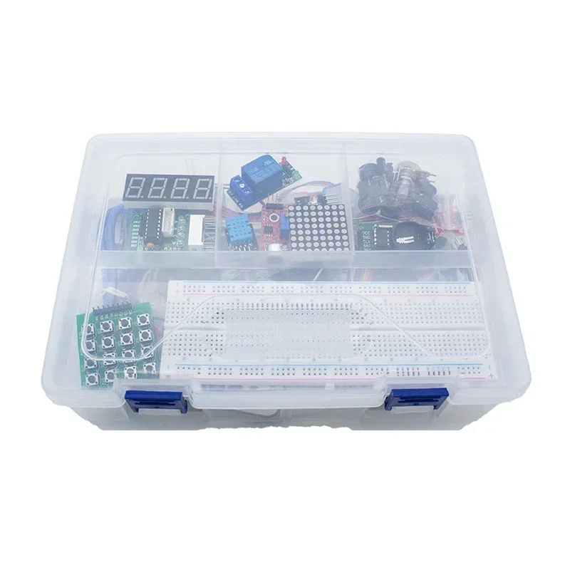 - Contient de nombreux composants, comme des câbles de saut, des LED, des résistances, etc.
