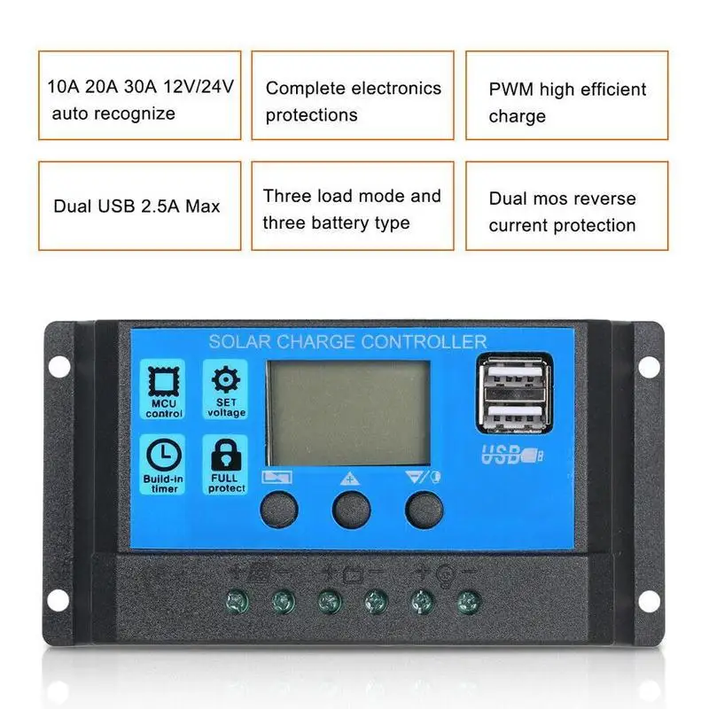 Il suffit de connecter le panneau solaire au contrôleur et de connecter les appareils à charger via les ports USB.