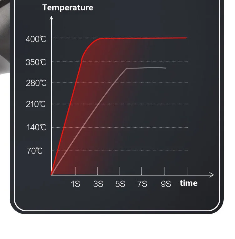 - La température atteint 400 ℃ par seconde, et l’efficacité est considérablement améliorée.