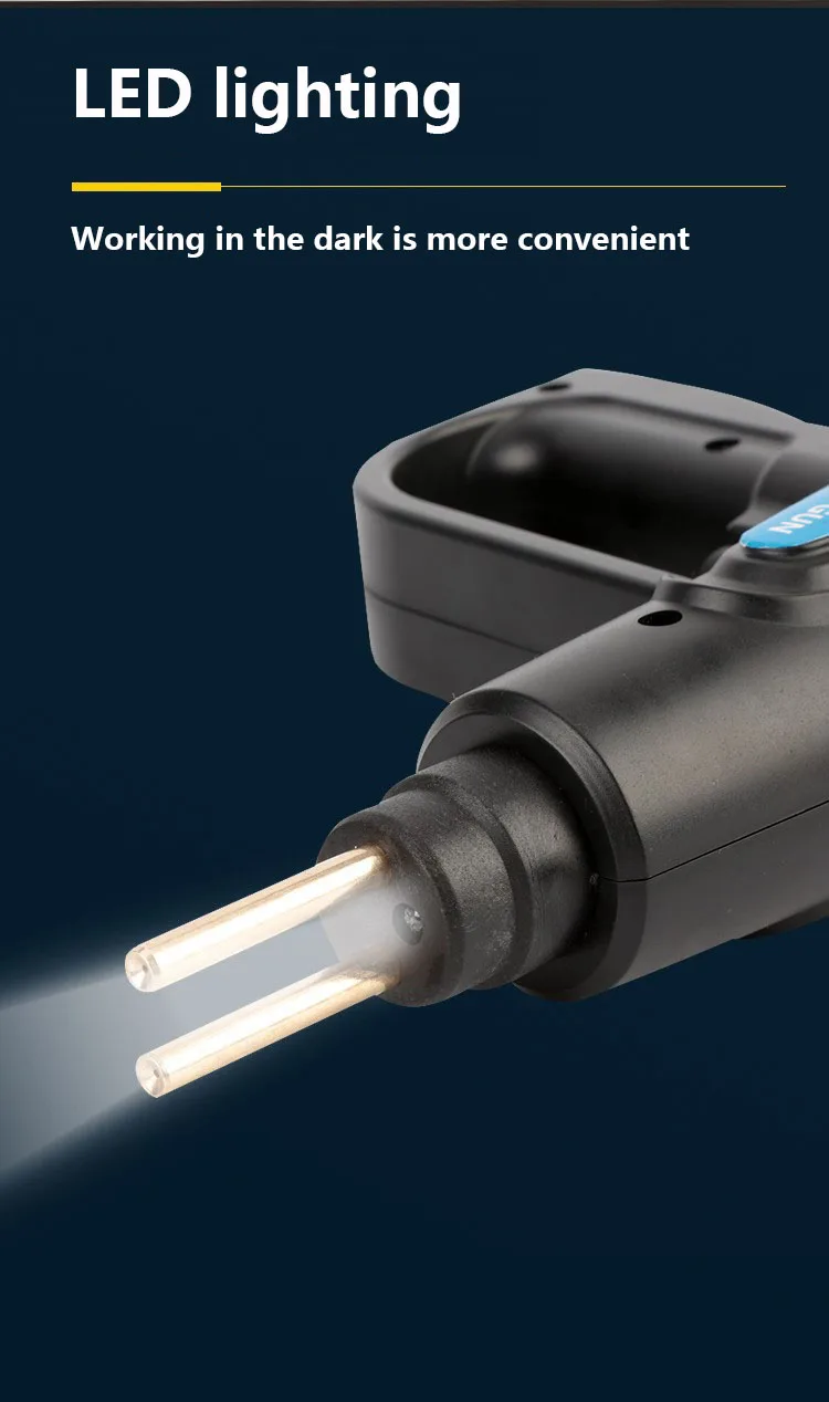 - L’éclairage LED facilite le travail dans l’obscurité.