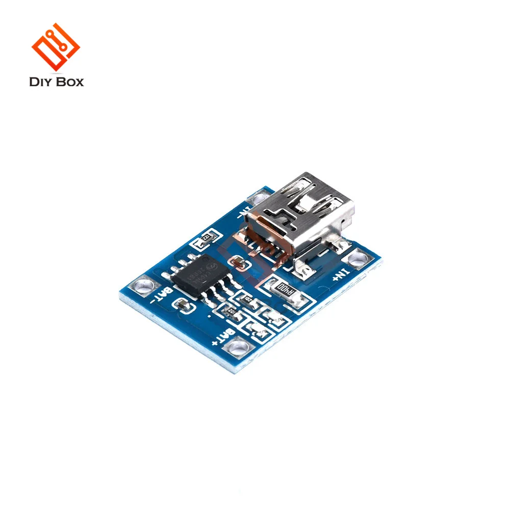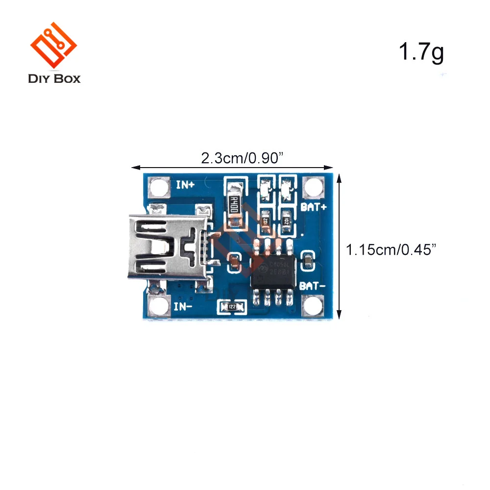 La carte de charge de batterie au lithium TP4056 est un mini chargeur conçu pour les batteries 18650. Avec une tension d’entrée de DC4.5V-5.5V, elle peut être alimentée via un câblage IN + IN- pad ou une entrée auxiliaire MiniUSB 5V. La tension de charge complète est de DC4.2V et le courant de charge est réglable jusqu’à 1A. Cette carte est équipée d’un indicateur de charge et peut fonctionner dans une plage de température de -10°C à +85°C.