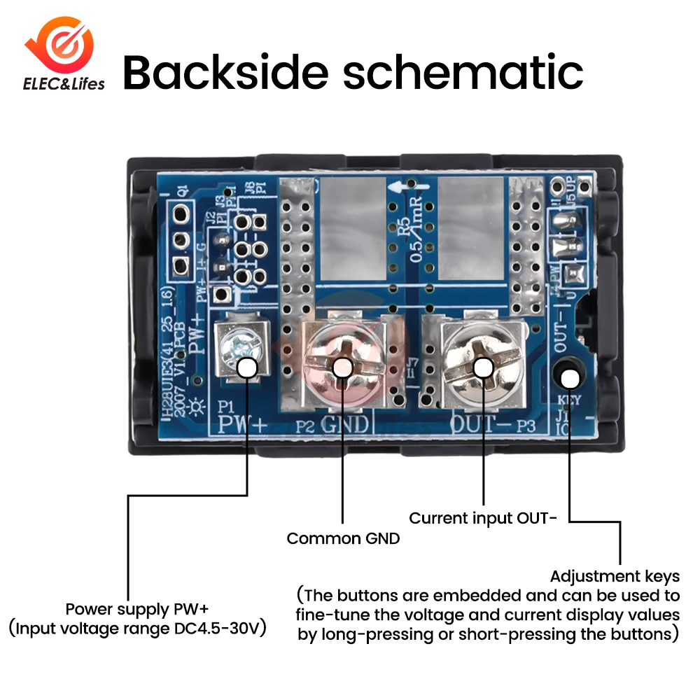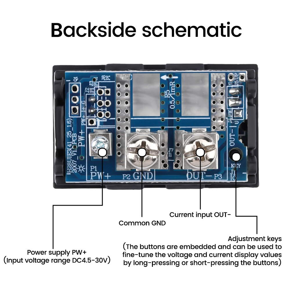 - Taille compacte, capable d’afficher la tension et le courant sur le même écran simultanément.