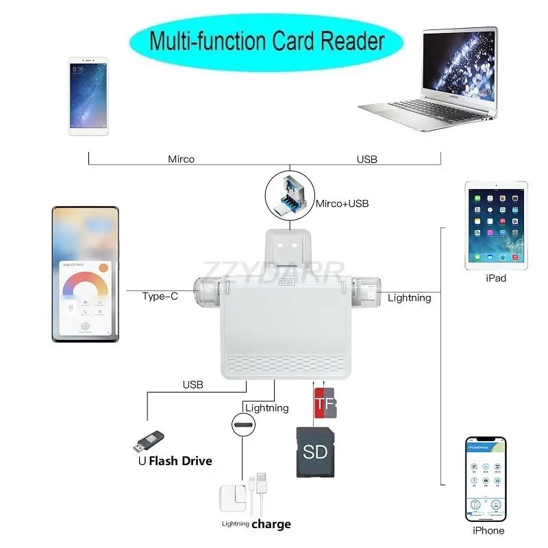Ce lecteur de carte est plug and play, ce qui signifie qu’il peut être utilisé directement sans pilote d’installation. Il est compatible avec les téléphones portables, les tablettes et les ordinateurs. Il est également compatible avec les périphériques USB tels que les claviers, les souris, les lecteurs de carte, etc. Cependant, il est important de noter que le téléphone portable doit prendre en charge la fonction OTG pour une utilisation optimale.