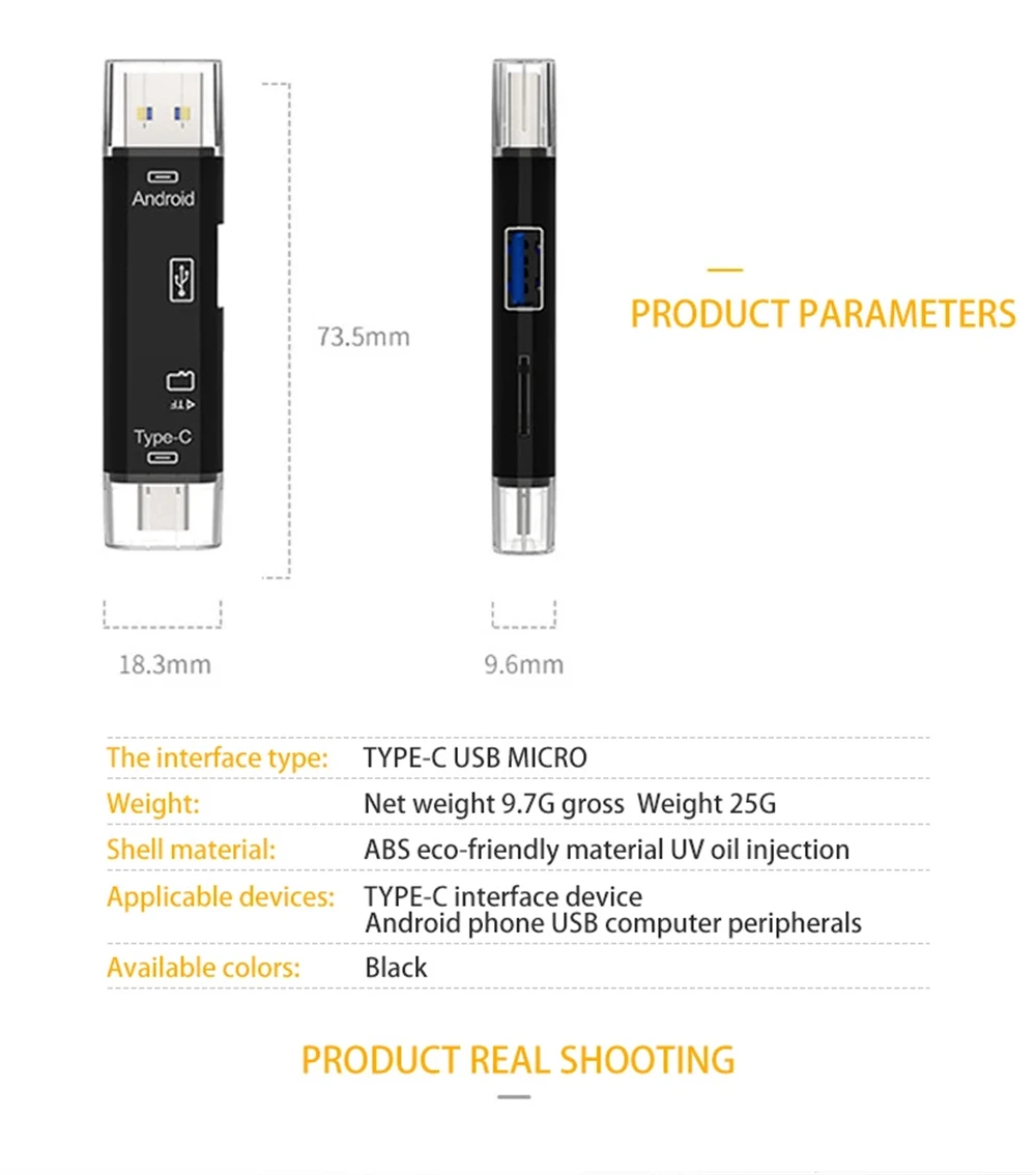 - Nom du produit : Lecteur de carte OTG Type-C 5-en-1