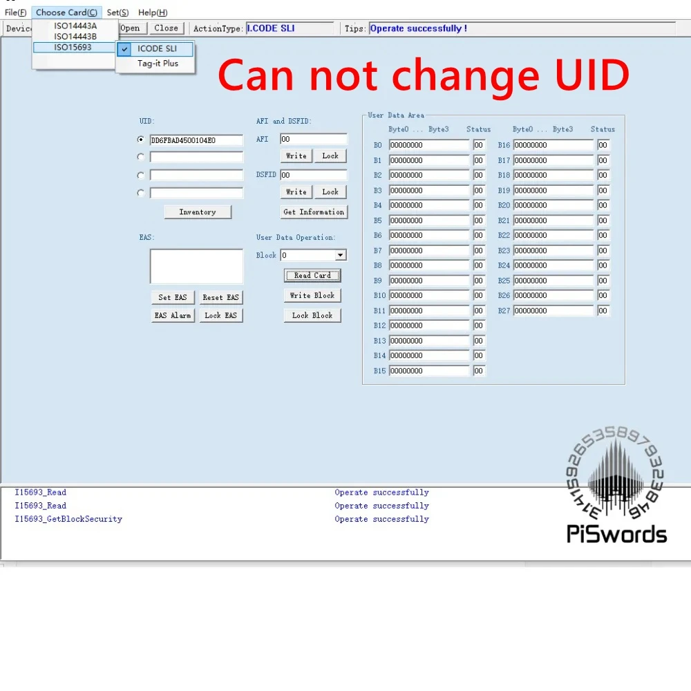 | Type de carte de soutien: | ICODE SLI, ICODE SLI-L, ICODE SLI-S, ICODE SLIX, ICODE SLIX-L, ICODE SLIX-S, Icode slix2, étiquetez-le, d’autres cartes compatibles |