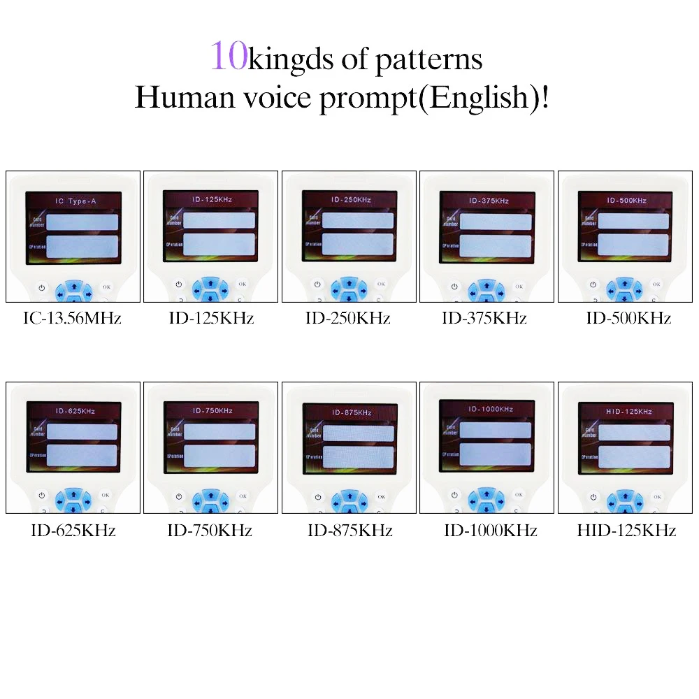 Le Lecteur RFID 10 morts anglais est un tout nouveau programmeur et écrivain lecteur copieur qui offre de nombreuses fonctionnalités. Il dispose d’un écran couleur HD de 2.9 pouces pour une meilleure visualisation. Il prend en charge la lecture et l’écriture des cartes de fréquences 125KHz, 250KHz, 500KHz, 375KHz, 625KHz, 750KHz, 875KHz, 1000KHz et 13.56MHz (ISO1443A/B).