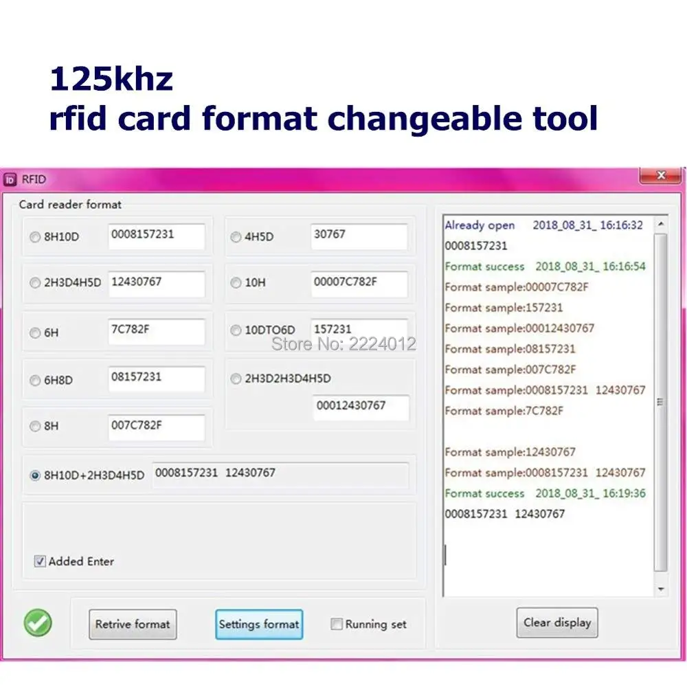 Lecteur de carte de proximité RFID avec format 8H10D 2H3D4H5D modifiable