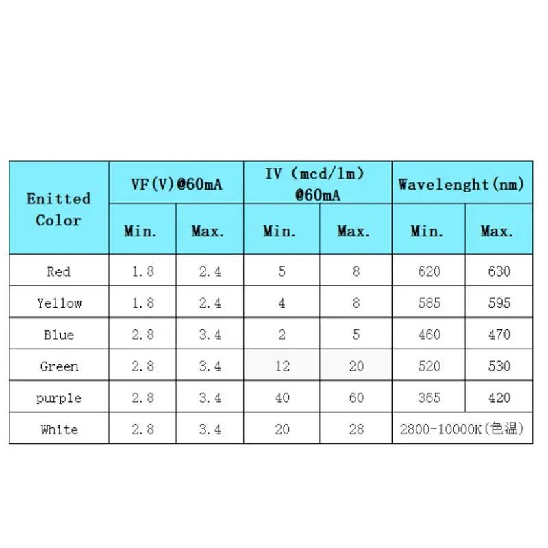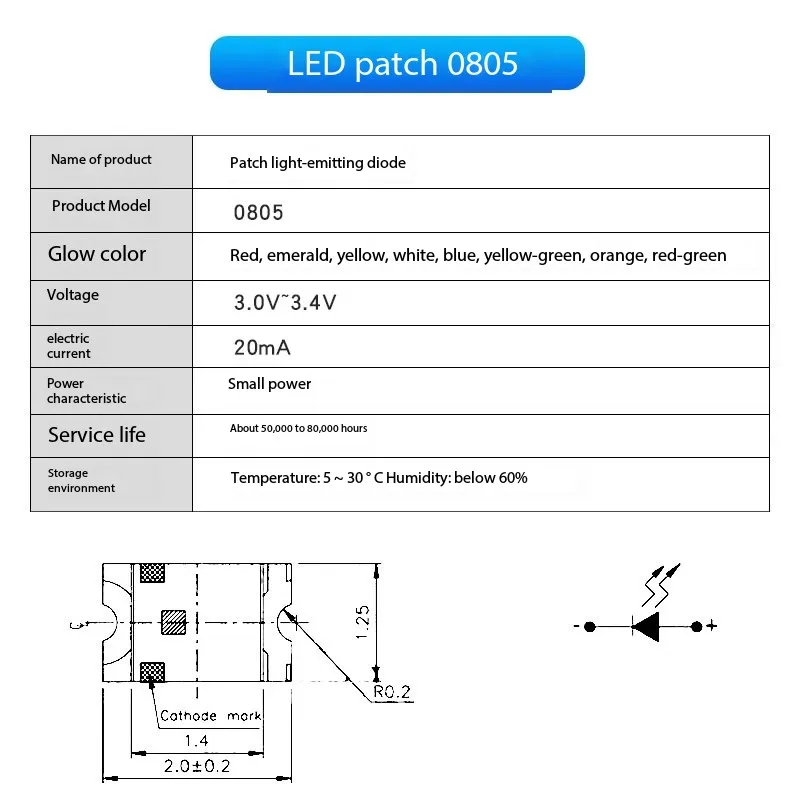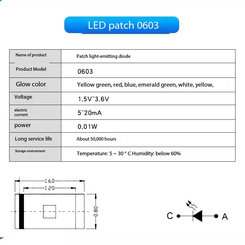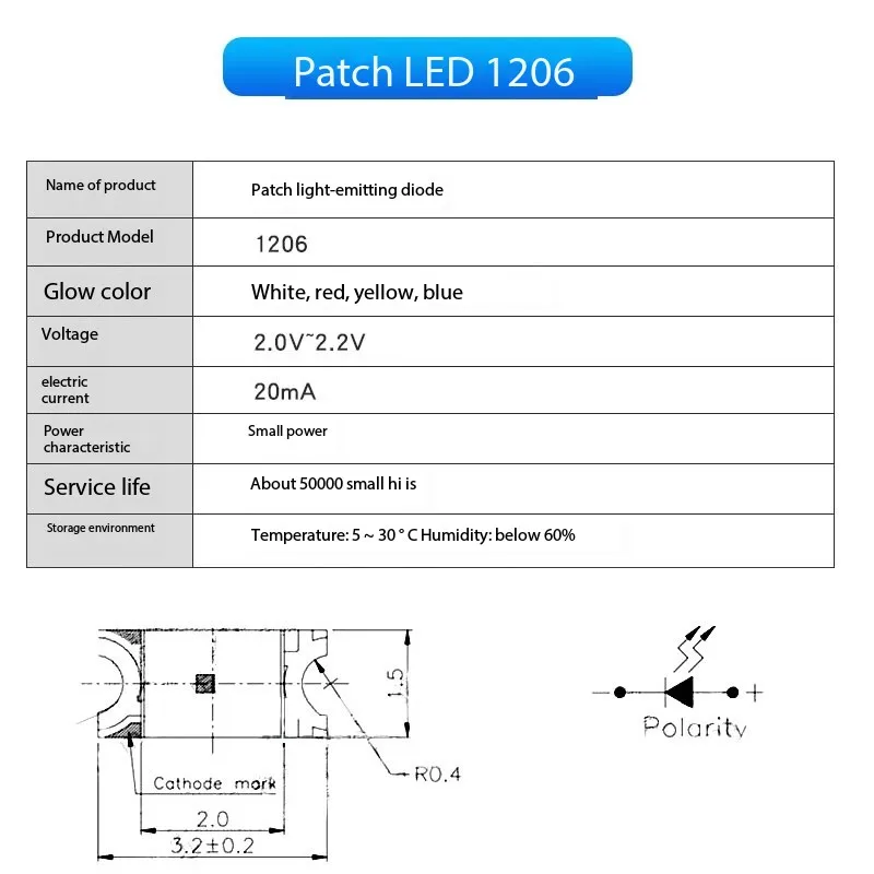 Tailles disponibles0402, 0603, 0805, 1206, 3528, 5050, 5730, 3020, 3014, 4014