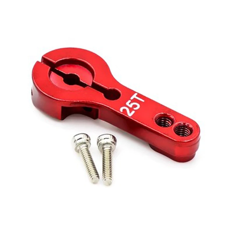 Le Klaxon de Bras Servo en Aluminium 25T est spécialement conçu pour s’adapter à la plupart des boitiers de direction standard tels que le MG995, MG996R, MG946 et d’autres. Fabriqué en aluminium CNC de haute qualité, ce bras oscillant de direction est solide et durable. Sa couleur rouge ajoute une touche d’esthétisme à votre servo. Veuillez vérifier le nombre de dents de votre boitier de direction avant de commander.