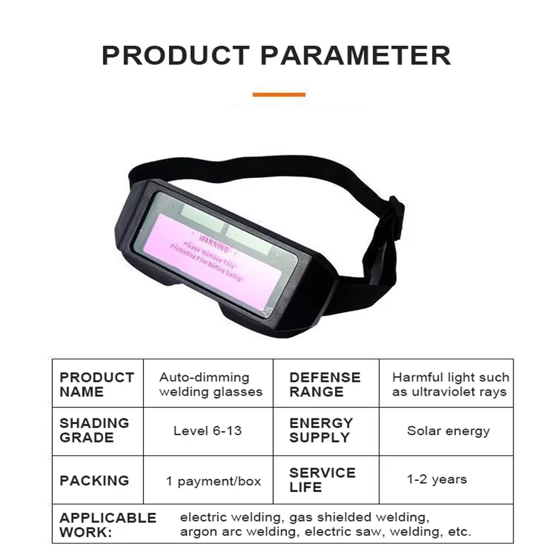 - Les lunettes de soudage avec abat-jour réglable sont conçues pour protéger les yeux des étincelles et des rayonnements nocifs.