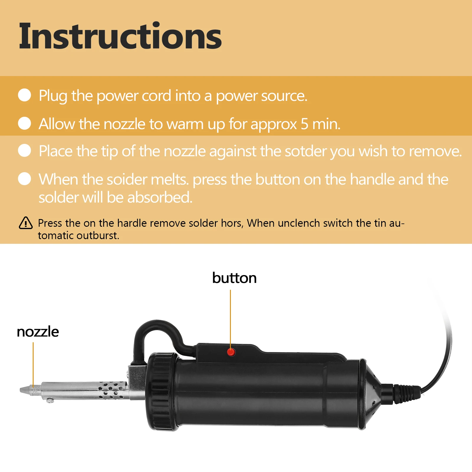 This is a high-quality solder removal tool with large volume and strong suction, perfect for solder removal work. It is suitable for removing solder from thick film integrated circuit and large component. Easy to use, fast and convenient, helps improve work efficiency. You can give it a try.