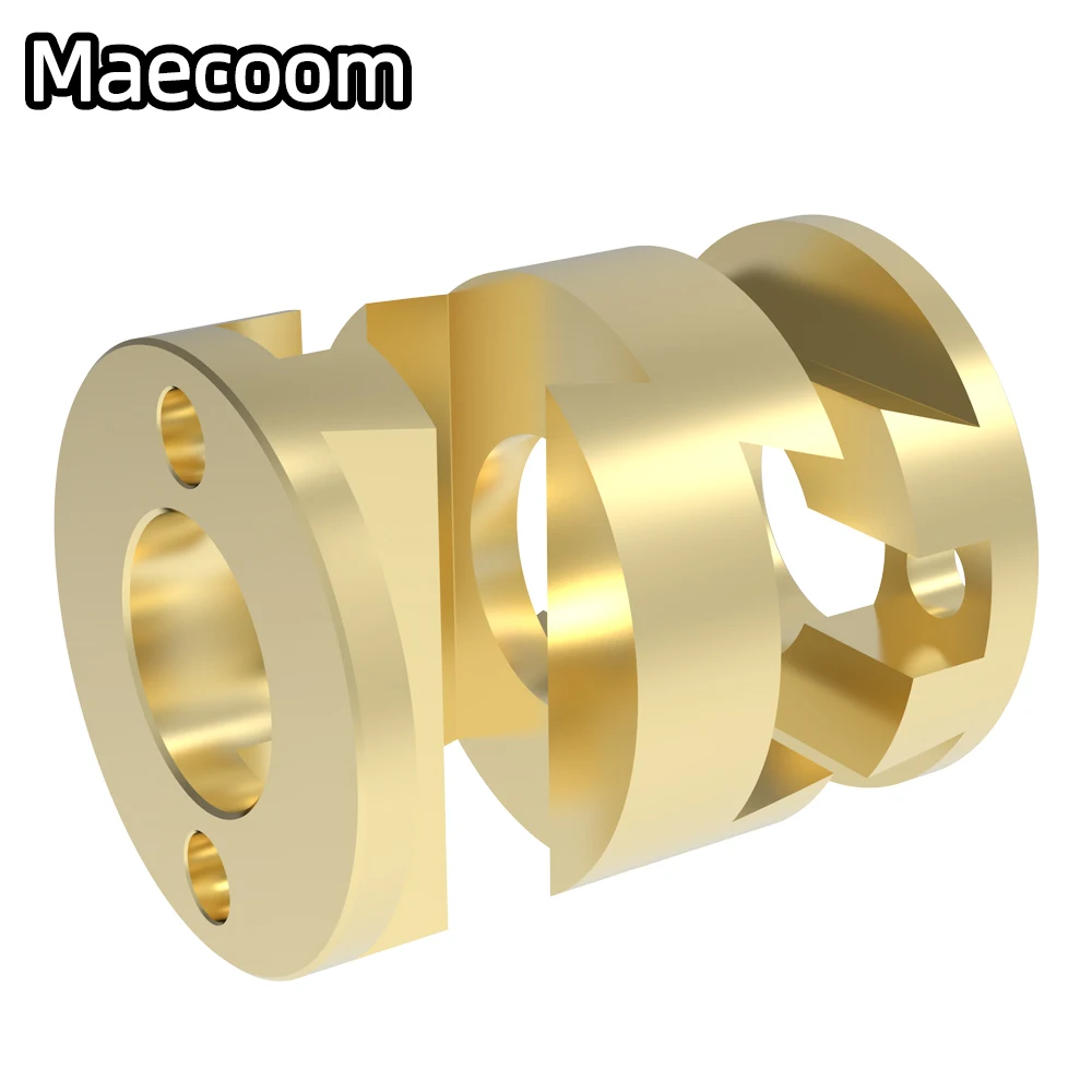 Cet accouplement Oldham est fabriqué en laiton, ce qui réduit les frottements et a une résistance suffisante. L’usinage CNC contrôle le jeu à l’emplacement de connexion.