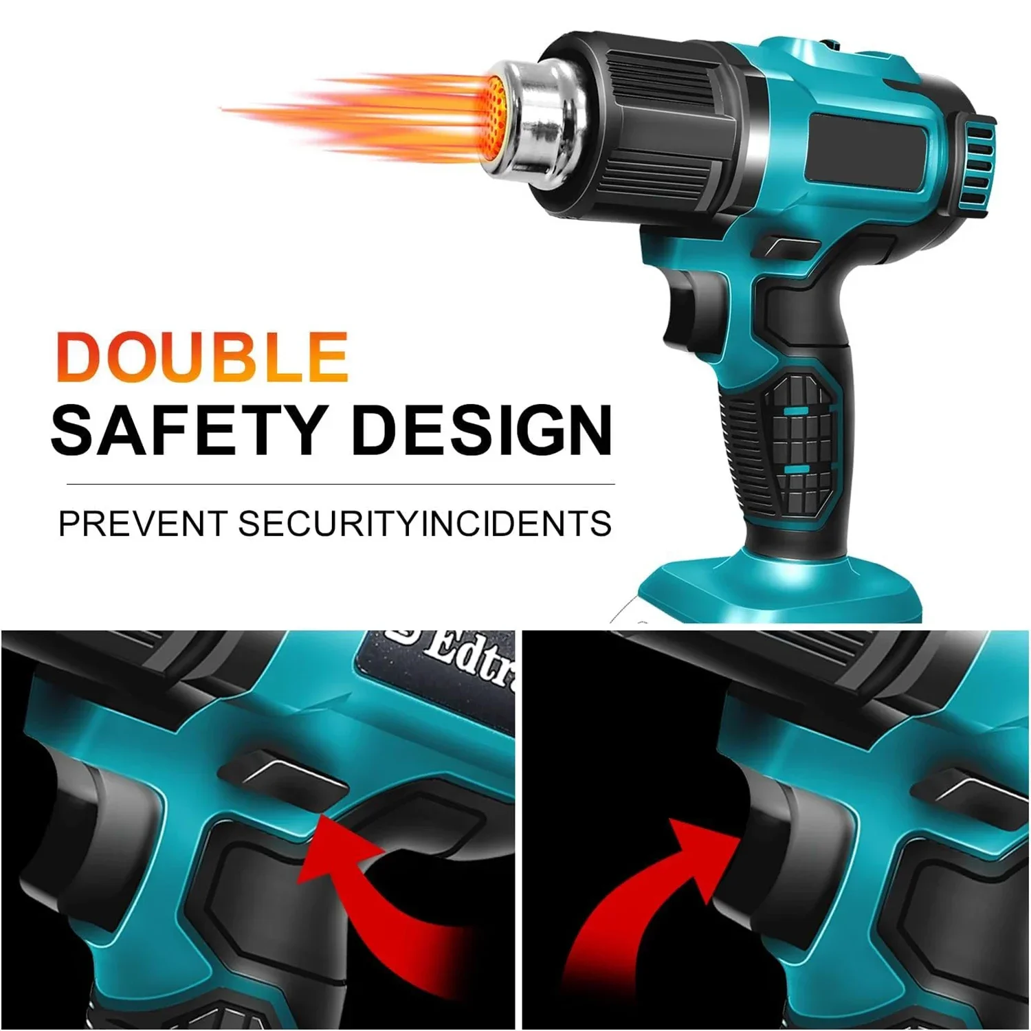 Le pistolet à air chaud génère des débits de température jusqu’à 500 ℃/932 ℉, ce qui est idéal pour les travaux nécessitant une chaleur intense. Avec une puissance de 200L/min et une vitesse de 13 m/s, il permet un séchage rapide et un travail efficace.