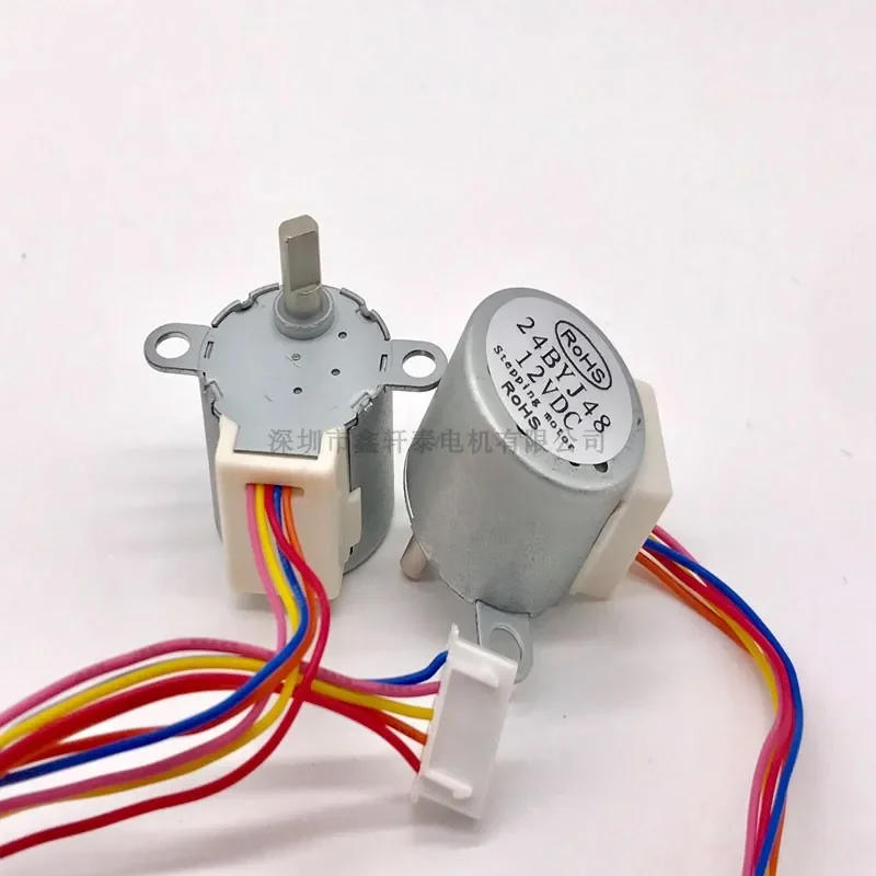 Le Micro moteur pas à pas de surveillance/climatisation est un petit moteur pas à pas offrant un couple élevé et une basse vitesse. Il est équipé de quatre phases à cinq fils, avec une tension de 12 V. Son diamètre est de 24mm et sa hauteur est de 19mm (moteur + réducteur). Le diamètre de son arbre de sortie est de 5mm (double position plate 3mm) et sa longueur est de 10mm. Il pèse 30g et son rapport de réduction est de 1:64. Il est emballé avec 1 pcs moteur pas à pas.