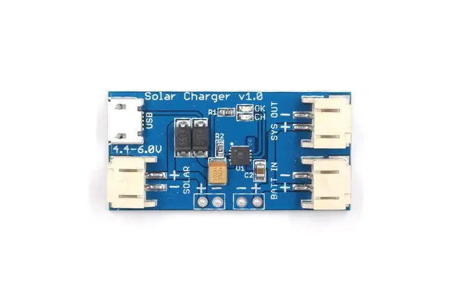 Les caractéristiques clés de ce chargeur solaire comprennent une entrée de panneau solaire de 4.4-6 V, un courant de charge maximum de 500mA, une interface de connecteurs JST 2 broches (ou PH2.0), une protection contre les courts-circuits, un courant de charge continu jusqu’à 500mA, une indication d’état de la batterie (rouge: charge, vert: chargé), une prise en charge de la charge USB (connecteur Micro-USB) et une taille compacte de 2 cm x 4 cm.