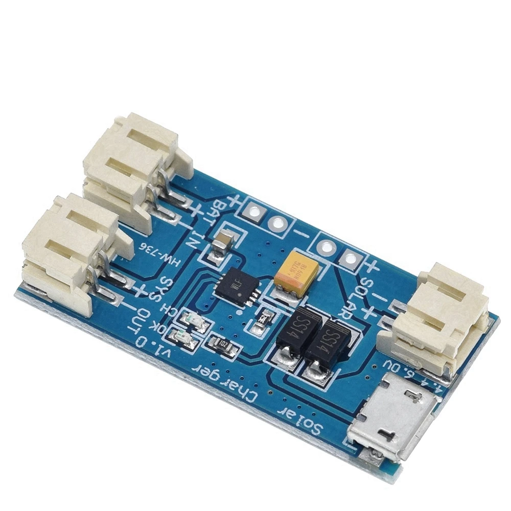 Ce chargeur solaire vous permet d’obtenir le plus d’énergie possible de votre panneau solaire ou autre appareil photovoltaïque et dans une batterie LiPo rechargeable. L’installation est également facile, il suffit de brancher votre panneau solaire sur un côté du chargeur