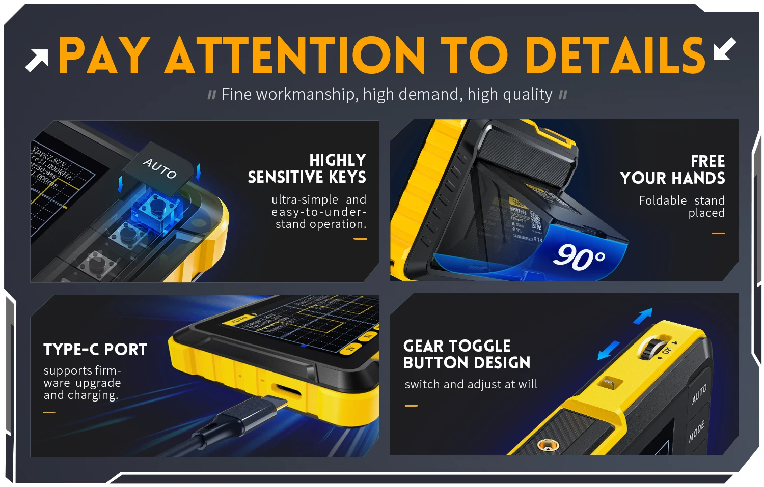 «DSO152» est un oscillographe tenu dans la main fortement pratique et rentable lancé par notre société, qui vise l’industrie d’entretien et l’industrie d’éducation de recherche.