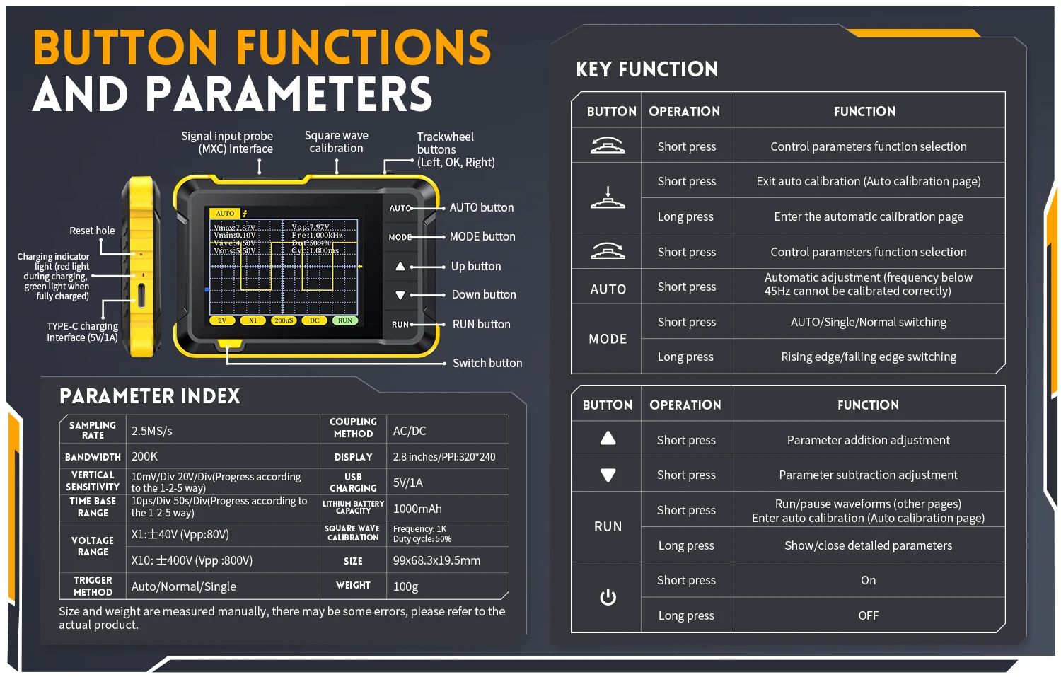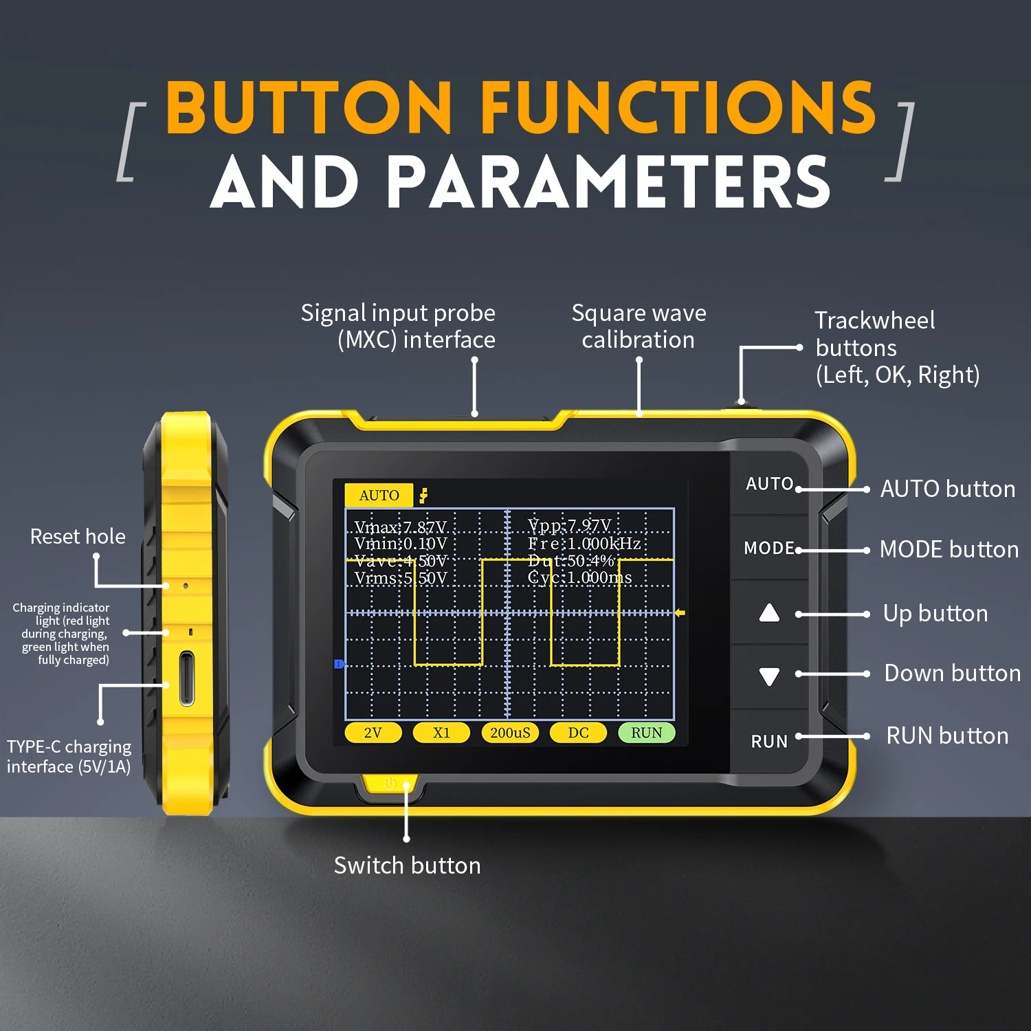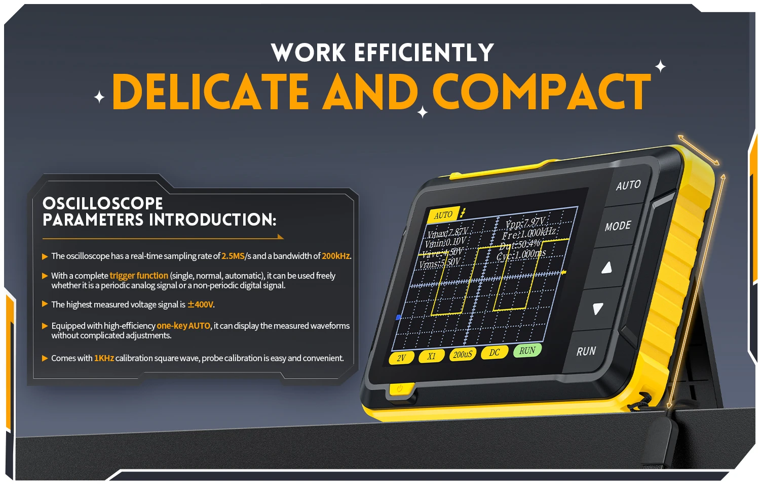 - Oscilloscope numérique miniature avec une bande passante analogique de 200KHz
