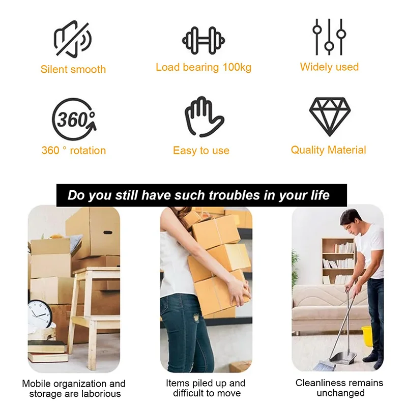 Polyvalence: Les poulies de meubles universelles conviennent à de nombreux domaines de la vie, à une utilisation quotidienne dans les meubles, les machines, les vitrines, les chariots, les étagères, les jardinières, etc.