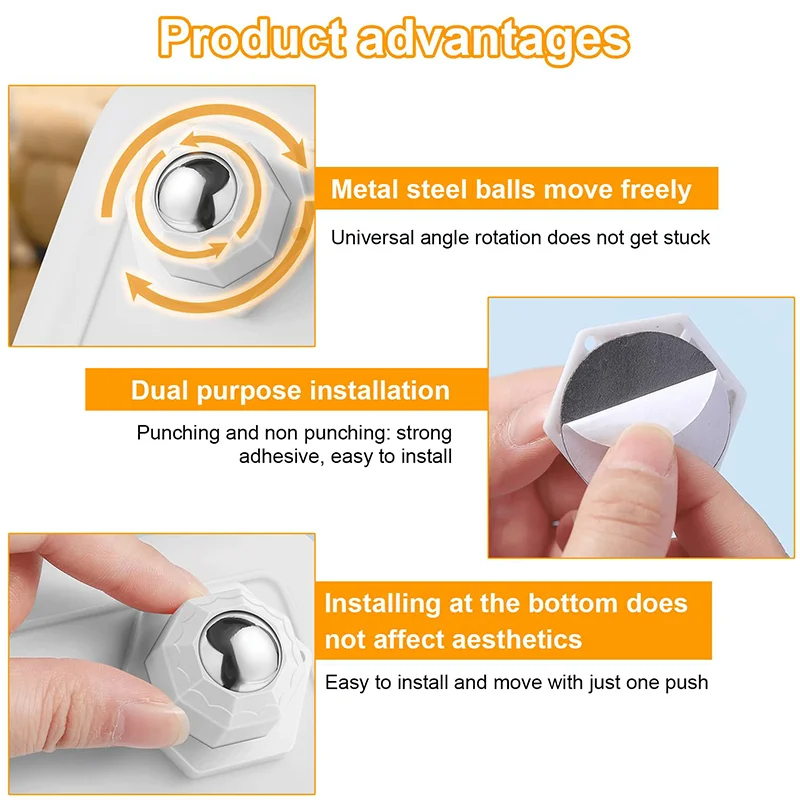 Facile à installer: les mini roulettes autocollantes fournissent des autocollants double face, qui peuvent être installés sans perçage, et si vous voulez une installation plus sûre, vous pouvez l’installer par vis.