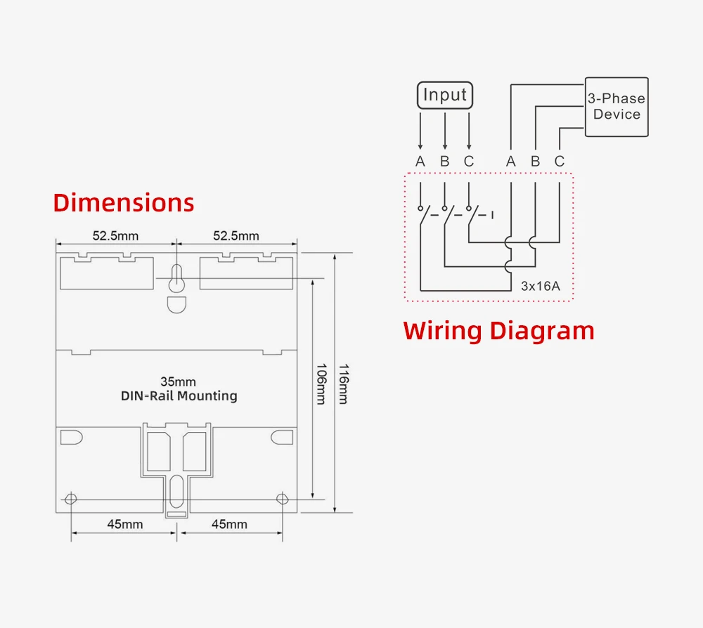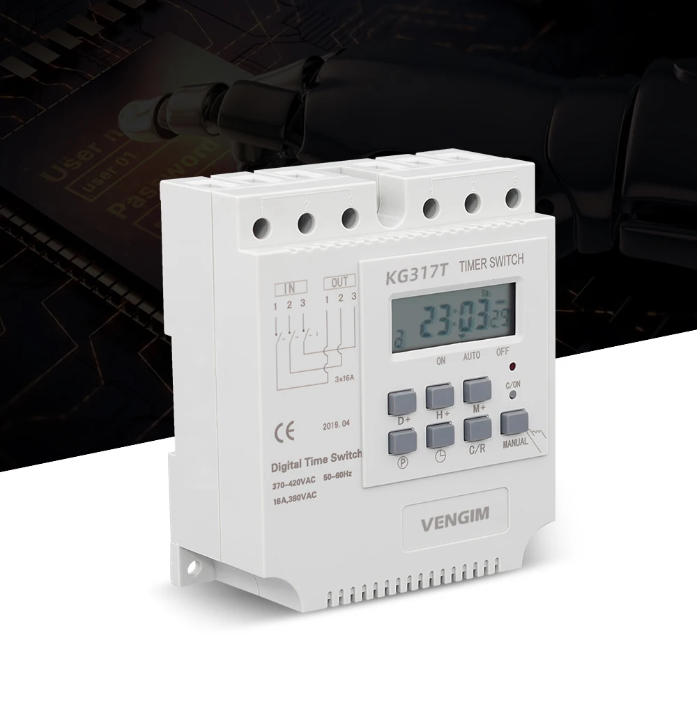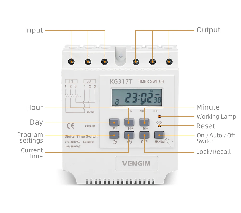 La tension de travail de 380VAC et la capacité de charge de 16A (charge réactive) ou 25A (charge résistive) en font un choix idéal pour les installations industrielles. De plus, la minuterie est facile à programmer grâce à son interface conviviale et offre une précision de haute qualité grâce à ses puces de haute précision.