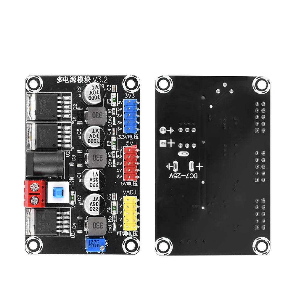 • DC1.25V-Vin: Fusible à restauration automatique 2A, avec voyant d’alimentation, tension de sortie réglable et peut alimenter l’appareil à gouverner; Remarque: les utilisateurs peuvent remplacer des fusibles à restauration automatique et des condensateurs électrolytiques plus appropriés en fonction des paramètres de la puce pour mieux répondre aux besoins de l’utilisateur. Besoin.