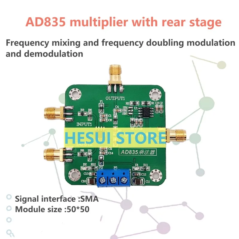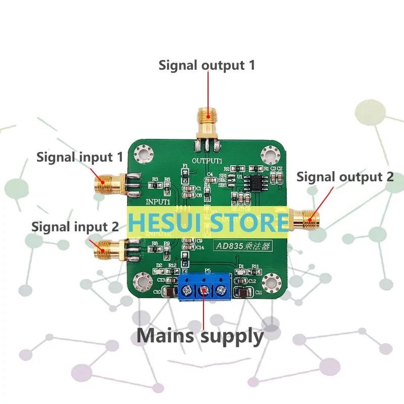 L’AD835 est un multiplicateur analogique de sortie de tension fabriqué en utilisant un processus bipolaire complémentaire isolé diélectrique. Elle produit un produit linéaire de deux signaux d’entrée avec une bande passante de sortie de-3dB de 250 MHz (petit temps de montée du signal de 1 ns). L’AD835 offre non seulement des performances de vitesse supérieures, mais est également facile à utiliser et riche en fonctionnalités. Le module utilise un grand nombre de découplages condensateurs, et un seul ampli op est ajouté à la sortie de l’étage arrière comme traitement d’amplification, qui élimine les défauts du petit amplitude de l’AD835.
