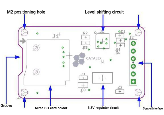 MicroSD vers l’interface de contrôle est également converti en 3.3V. Généralement, le système de