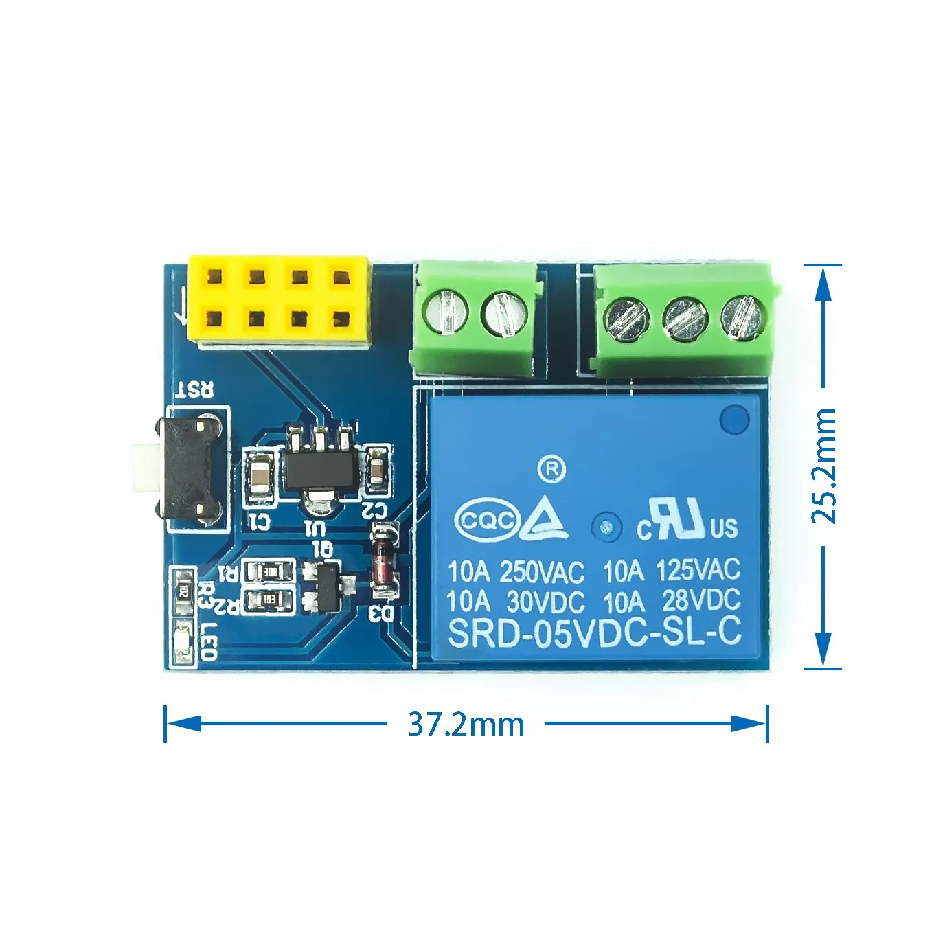 - Capacité de charge du relais : 10A 250VAC / 10A 125VAC / 10A 30VDC / 10A 28VDC
