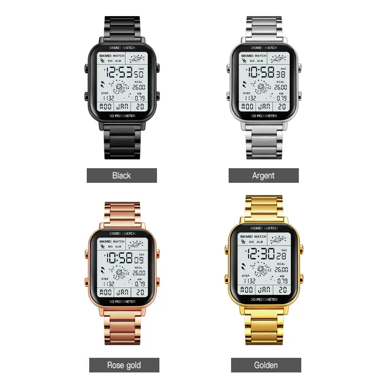 La montre SKMEI est dotée d’un bracelet en acier inoxydable, ce qui lui confère une durabilité et une résistance accrues. Vous n’aurez pas à vous soucier de l’usure ou de la rupture du bracelet, car il est conçu pour durer.