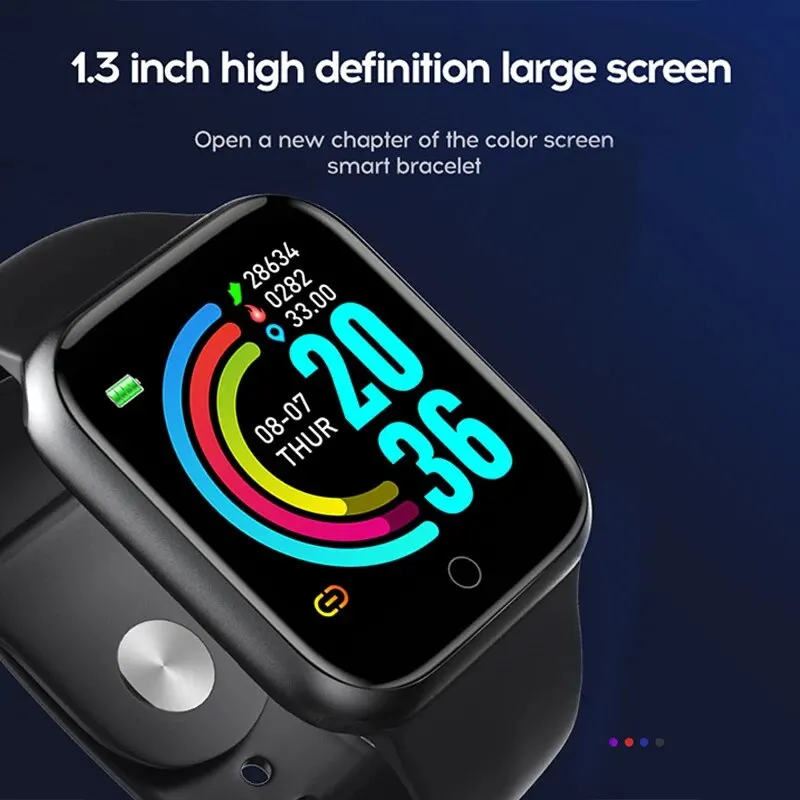 L’écran coloré de la Y68 réel pas compter mode montre de sport intelligente Fitness Tracker montre de sport Android IOS Bracelet intelligent permet une lecture et une utilisation faciles, même dans des conditions de faible luminosité.