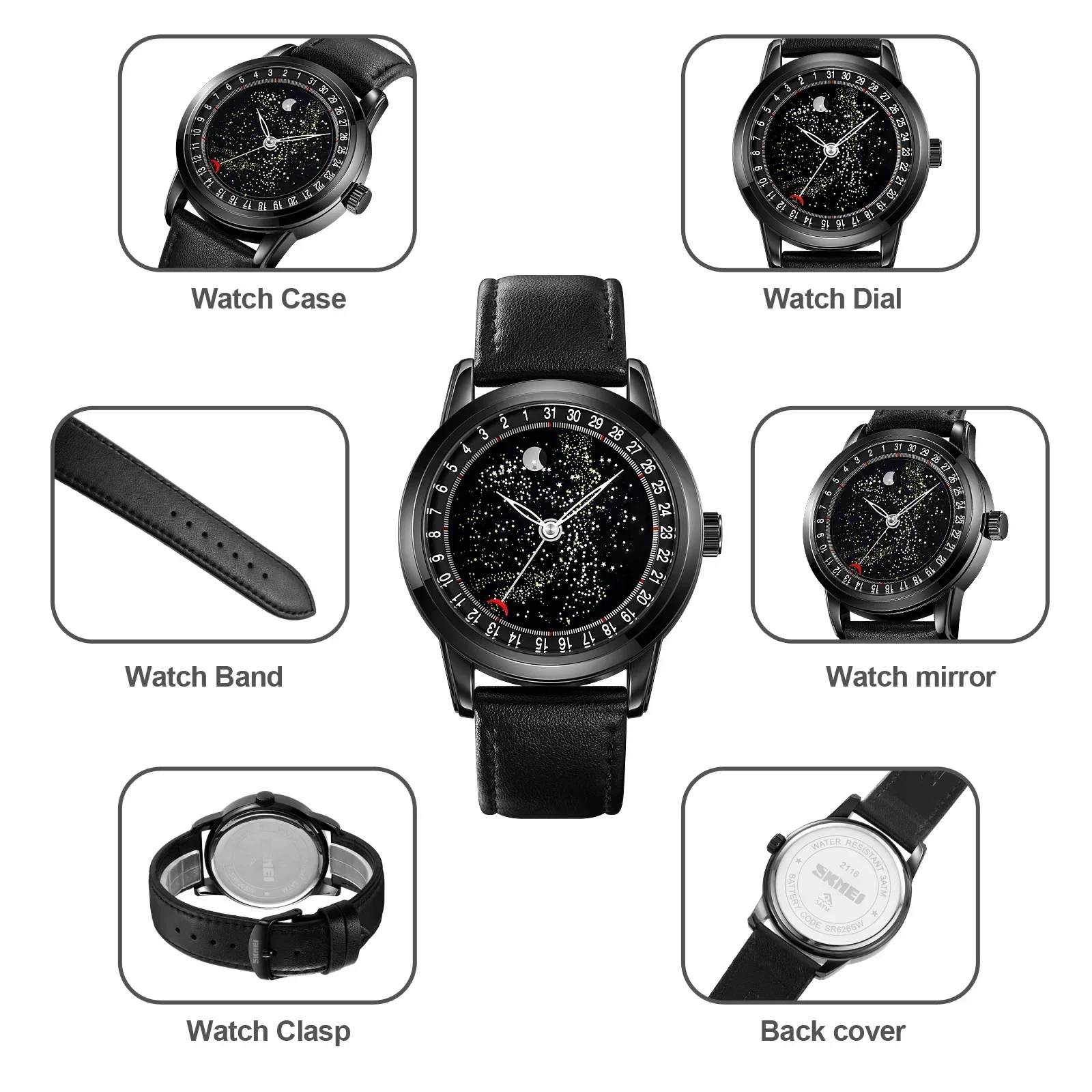 étoilé et de la phase de lune. De plus, la montre est jugée confortable à porter grâce à son bracelet en cuir