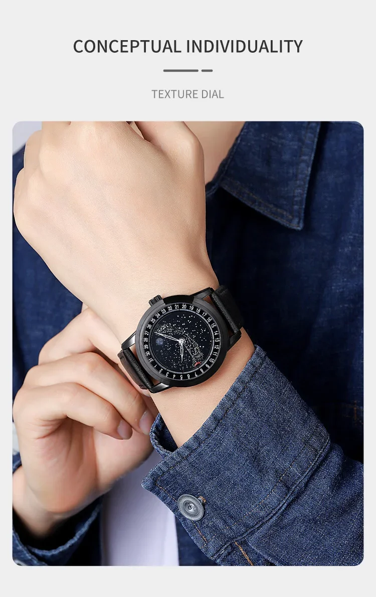 - Montre-bracelet décontractée pour homme avec bracelet en cuir véritable