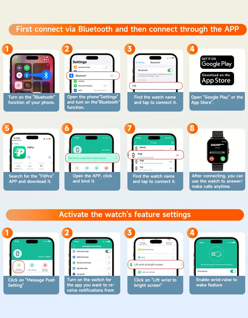 Après avoir reçu la montre, veuillez la charger d’abord. Parce qu’après une longue période de logistique, la montre a une batterie faible. Avant de l’utiliser, scannez le code QR sur le manuel pour télécharger l’application et la connecter à la montre avec l’application