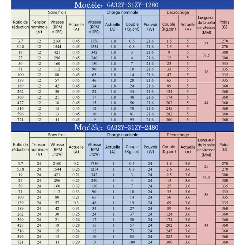 - Type de moteur : Moteur CC planétaire