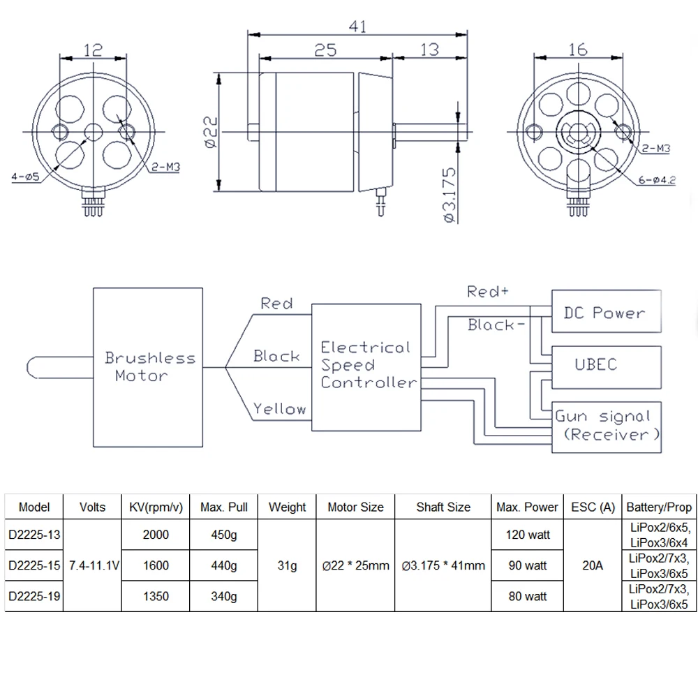 - Moteur brushless D2225 2000KV/1600KV/1350KV