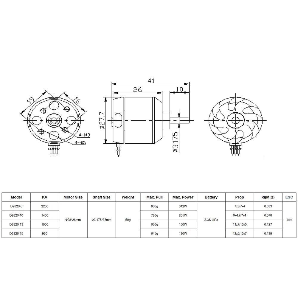 - Moteur brushless D2826 2200KV/1400KV/1000KV/930KV
