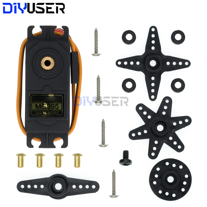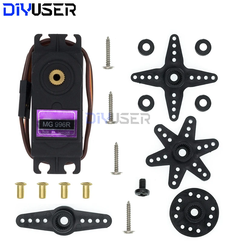 Les servomoteurs numériques MG996R MG996 MG995 avec engrenage métallique sont des composants idéaux pour une utilisation dans les voitures, hélicoptères, bateaux et avions radiocommandés. Ils sont compatibles avec la plupart des connecteurs de récepteur standard tels que Futaba, Hitec, Sanwa et GWS. Ces servomoteurs offrent une vitesse de fonctionnement élevée et un couple de décrochage puissant, ce qui les rend parfaits pour les applications nécessitant des mouvements rapides et précis.
